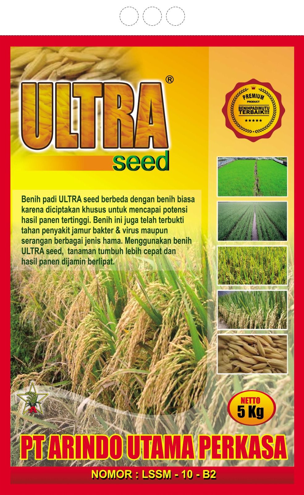 Benih Padi Varietas Unggul dengan Kualitas Premium. Telah mendapatkan Sertifikasi Sistem Manajemen Mutu SNI ISO 9001-2015.